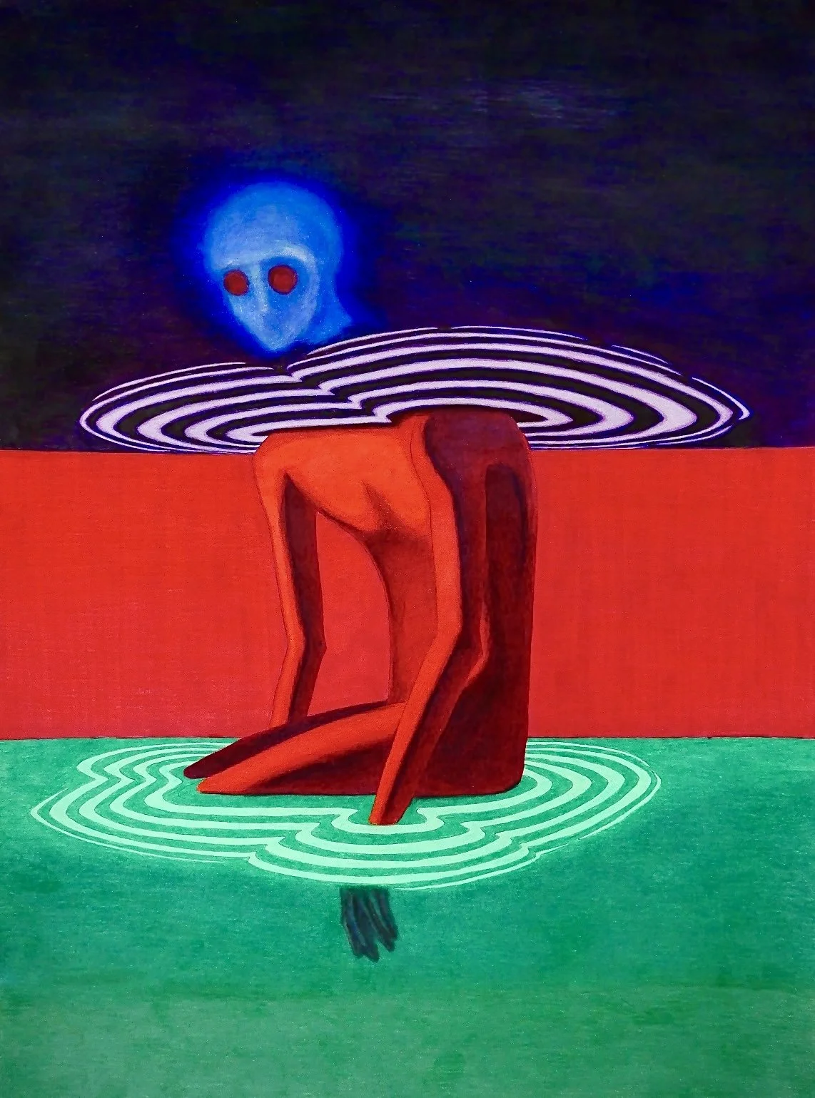 The Floating Man, 2024, colored pencil on paper, 18 in x 24 in